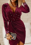 Casual Rhinestone Long Sleeved Tight Fitting Dress