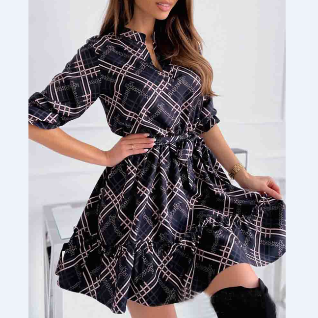 Blue Women'S Long Sleeve Pocket Casual Dress