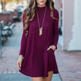 Blue Women'S Long Sleeve Pocket Casual Dress