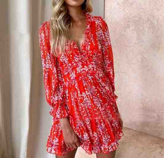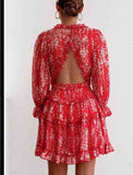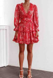 Casual Red Check Long Sleeve Dress