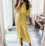 Blue Women'S Long Sleeve Pocket Casual Dress