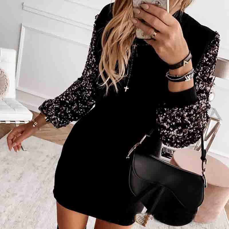 Casual Rhinestone Long Sleeved Tight Fitting Dress