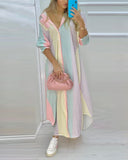 Blue Women'S Long Sleeve Pocket Casual Dress