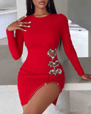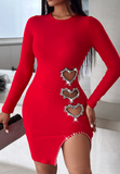 Casual Rhinestone Long Sleeved Tight Fitting Dress