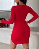 Casual Women's Chain Slim Long Sleeve Dress