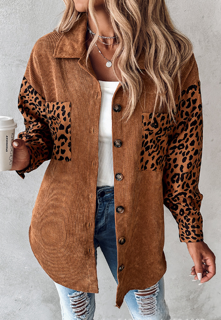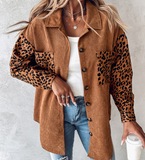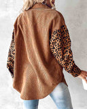 • Solid Color Temperament Leopard Print Contrasting Long Sleeved Jacket