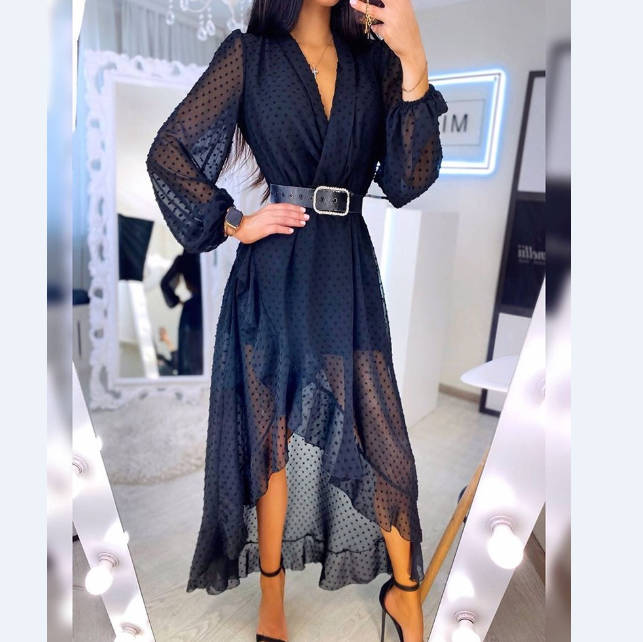 Deep V-Neck Sexy Long Sleeve Tight Dress