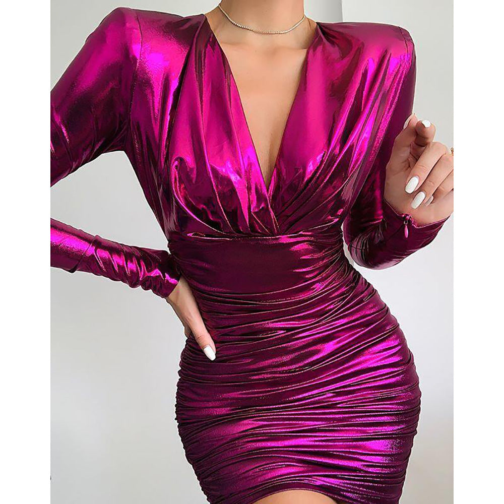 Deep V-Neck Sexy Long Sleeve Tight Dress