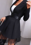 Black Zippered Pocket Patchwork Long Sleeved Dress