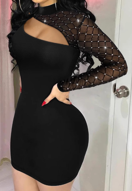 Black Sexy Mesh Long Sleeve Dress