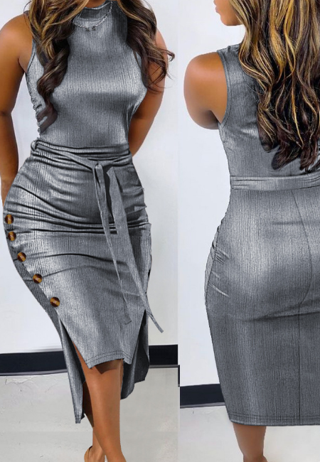 Black Chain Chiffon Sleeveless Dress