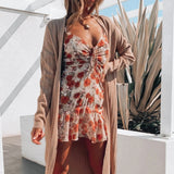 • Ladies Floral Chiffon Slim High Waist Sling Dress