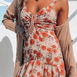 Ladies Floral Chiffon Slim High Waist Sling Dress