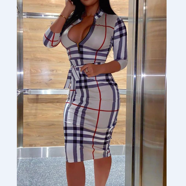 Deep V-Neck Sexy Long Sleeve Tight Dress
