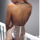 Sexy Deep V-Neck Halter Sequins Hanging Neck Chain Bag Hip Dress