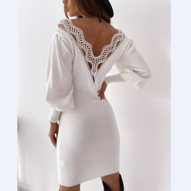 Deep V-Neck Sexy Long Sleeve Tight Dress
