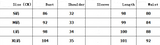 Sizes can vary according to style and fabrication of the garment.