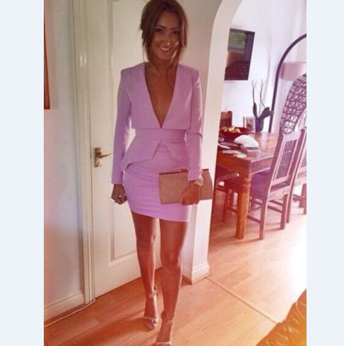 Deep V-Neck Sexy Long Sleeve Tight Dress
