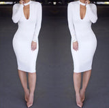 Deep V-Neck Sexy Long Sleeve Tight Dress
