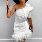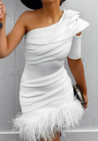 • Women'S Slim Solid Color White Hip Dress