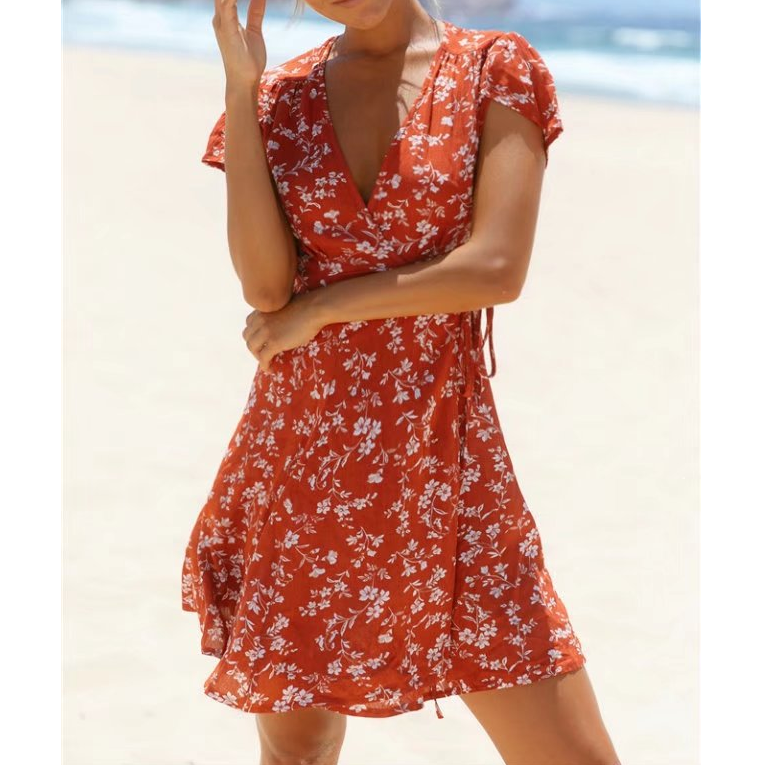 • Women'S V-Neck Short-Sleeved Printed Dress