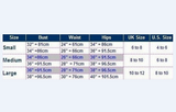 Sizes can vary according to style and fabrication of the garment.