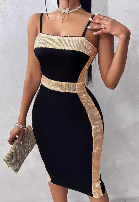 • Fashion Women'S Bead Splicing Sling Tight Fitting Sleeveless Dress