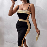 Fashion Women'S Bead Splicing Sling Tight Fitting Sleeveless Dress