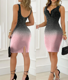 • Printed V-Neck Lace Splicing Skinny Sleeveless Dress