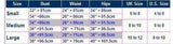 | Hip Size | 84cm/33" | 88cm/35" | 94cm/37" | 99cm/38.9" |