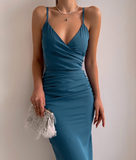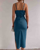 • Solid Color Women's Sling Skinny Sleeveless Slit Dress