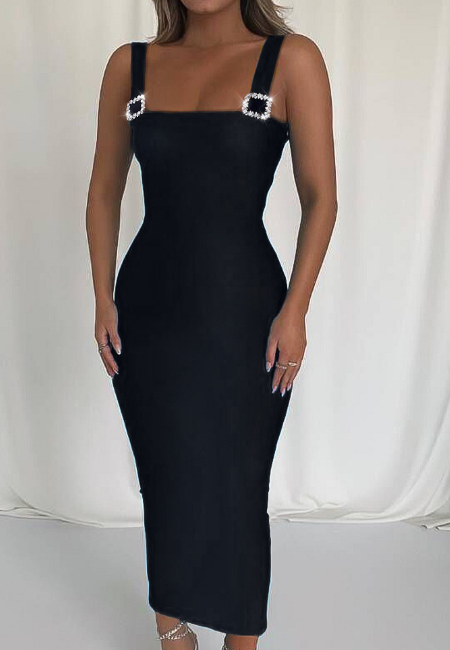 • V-Neck Diamond Buckle Tight Sleeveless Dress