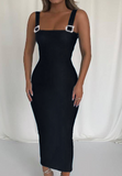 V-Neck Diamond Buckle Tight Sleeveless Dress