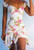 • V-Neck Women's White Sleeveless Print Dress