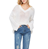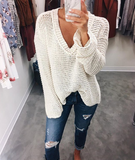 • Loose V-Neck Knit White Long-Sleeve Sweater