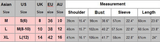 | AUS - size | AUS - size | UK - size | Europe - size | USA - size |