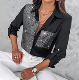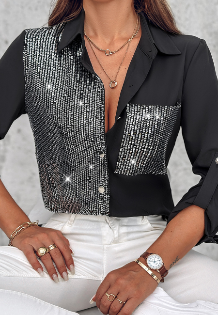 Women'S Beaded Patchwork Long Sleeved Shirt