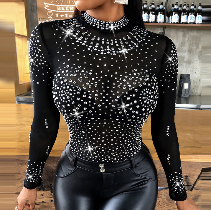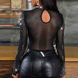 Black Mesh One-Shoulder Puff-Sleeve Shirt