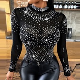Black Lace Splicing Long Sleeved Top