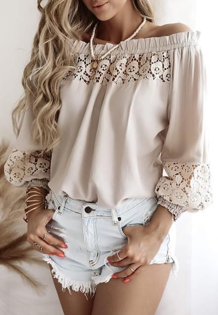 Black Mesh One-Shoulder Puff-Sleeve Shirt