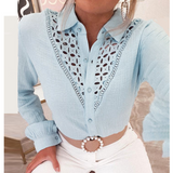 Casual Apricot Splicing Long-Sleeve Lace Top