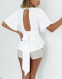 Black Mesh One-Shoulder Puff-Sleeve Shirt