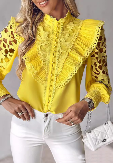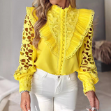 Casual Apricot Splicing Long-Sleeve Lace Top