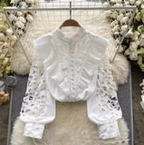 Black Lace Splicing Long Sleeved Top
