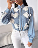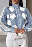 Casual Apricot Splicing Long-Sleeve Lace Top