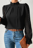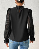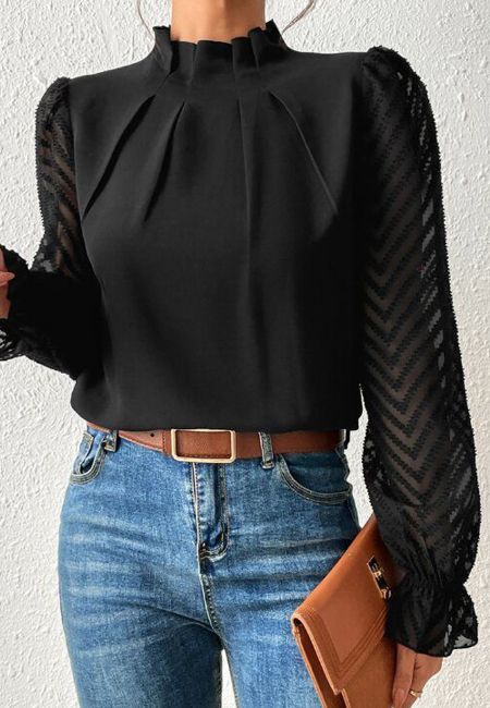 Black Mesh One-Shoulder Puff-Sleeve Shirt