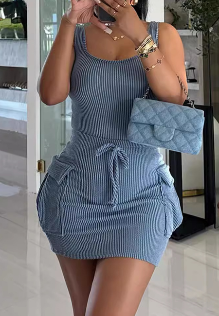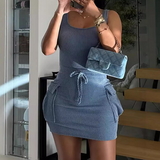 Black Sling Sexy Sleeveless Dress Two-Piece Set