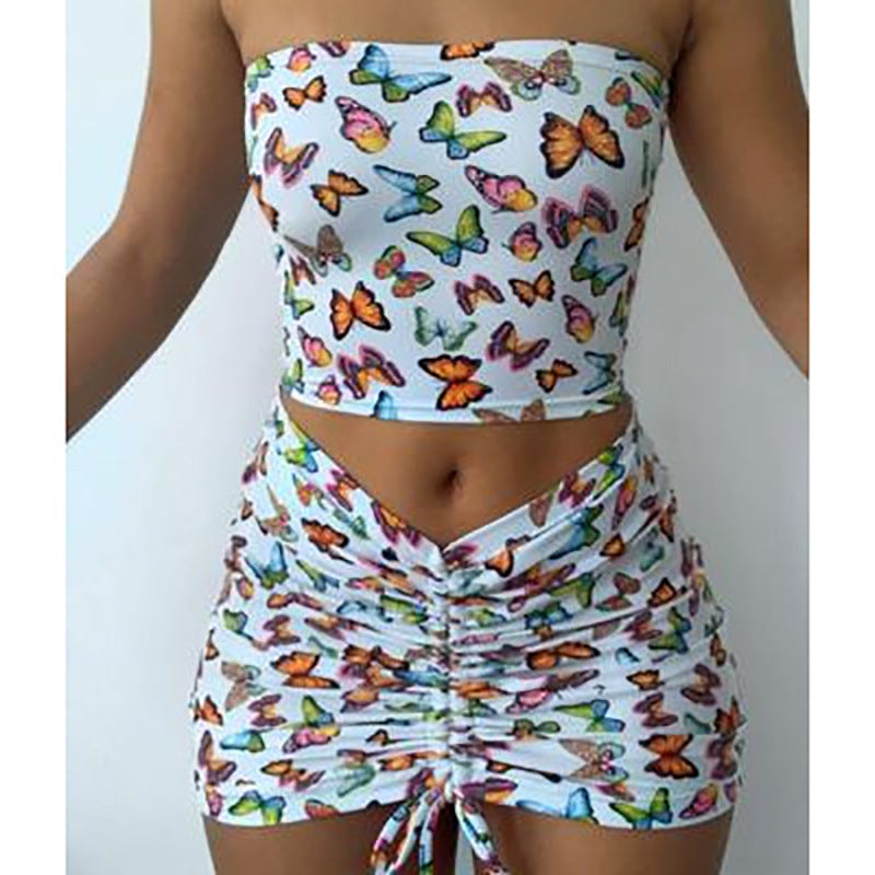 Black Sling Sexy Sleeveless Dress Two-Piece Set