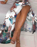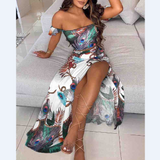 Floral Long-Sleeve High-Neck Skinny Two-piece Set