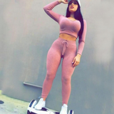 Floral Long-Sleeve High-Neck Skinny Two-piece Set